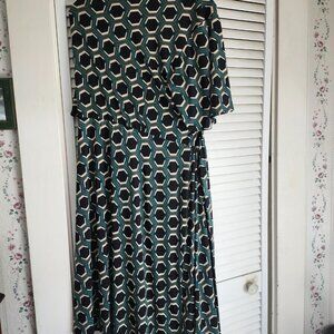 Black and green print dress with tie