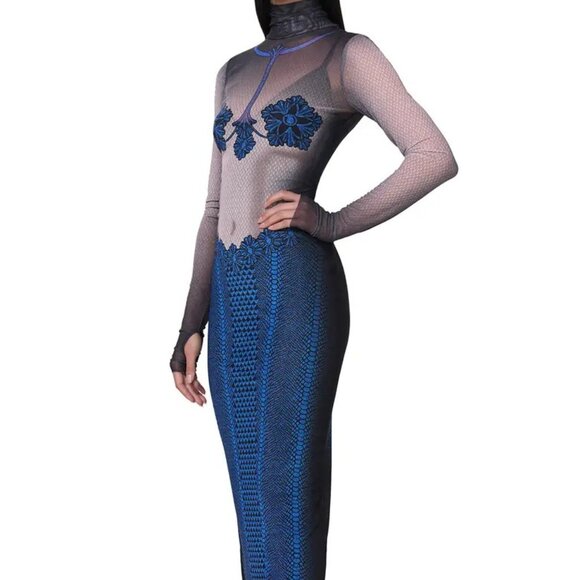 Shailene Long Sleeve Turtleneck Mesh Dress