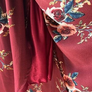 Sheared bodice with attached armbands. Flirty skirt with an satin underskirt. Hi low, with a 50 inch length from shoulder.