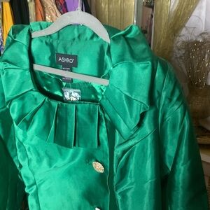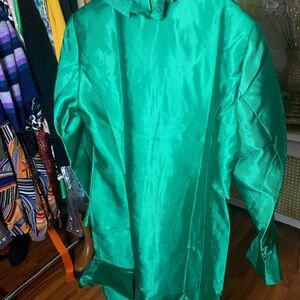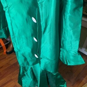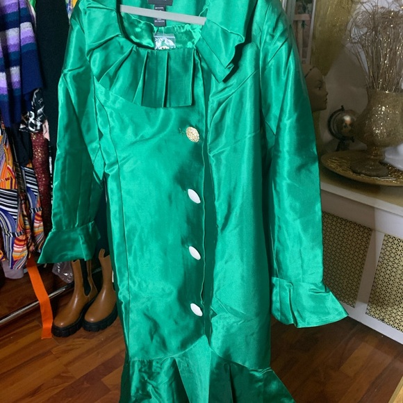 Ashro New hunter green ruffle collar, sleeves and semi pleats bottom with diamond crystal buttons down dress. Very cute