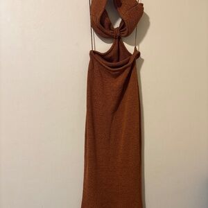 Cult Gaia V-Neck Long Dress. Stains are less visible when worn. Seen on Madelyn Clines character in Glass Onion. :)