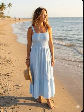 pastel blue plaid backless dress