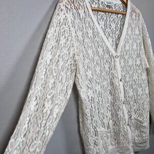 Dress Barn Beige Lace Cardigan with Pockets Women's Size 1X Made in USA