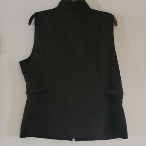 This black vest from Dress Barn features a sleek and structured silhouette, perfect for adding a touch of elegance to any outfit. Zippered pockets. No rips, tears or stains. Smoke and Pet free home