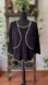 This chic black blouse with elegant white trim is perfect for any occasion. Add a touch of sophistication to your wardrobe.