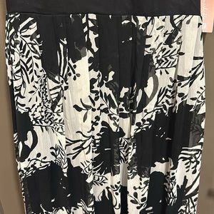 New with tags, black and white polyester dress with adjustable spaghetti straps, soft and breezy material