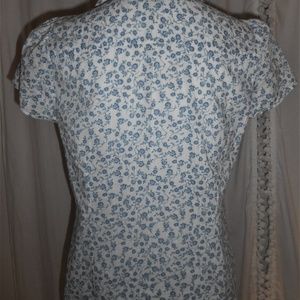 Dress Barn Blue Floral Cotton Button Down Top S