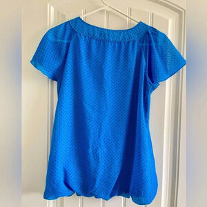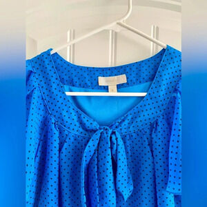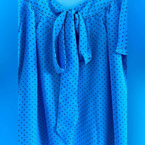 Dress Barn Blue Polka Dot Tie Neck Blouse