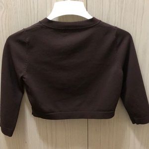 Brand new, never worn, Dress Barn 3/4 sleeve dress cardigan. Sits 3in below bust line and has one button at the neckline. Great with many tops, and outfits.