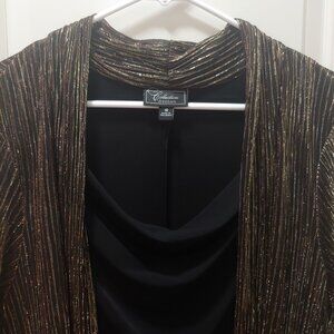 Dress Barn Collection Black Dress & Gold Metallic Sheer Cardigan Plus Size 16W