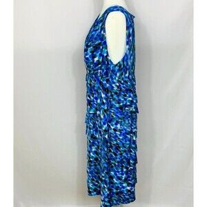 Dress Barn Collection Dress Woman Size 20 Blue Tiered V Neck Sleeveless Midi
