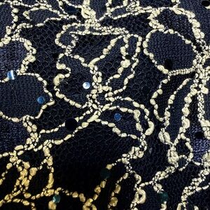 Stylish navy dress with intricate cream lace. Ideal for special occasions.