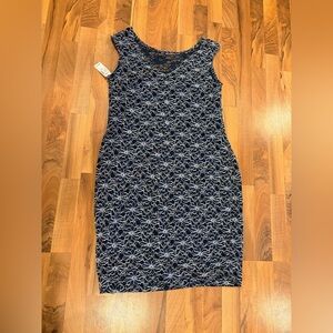 Dress Barn Elegant Navy and Cream Midi Dress