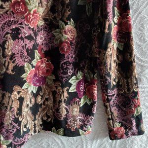 Dress Barn Elegant Stretch Velveteen Floral Pattern Long Sleeved Blouse Top.