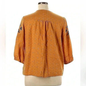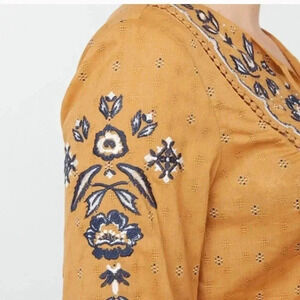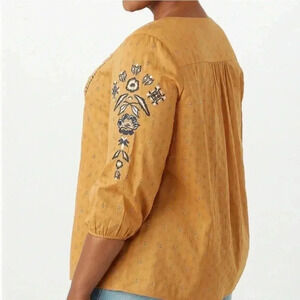 Embroidered Crochet Trim Boho Peasant Top blouse Plus Size Boho Bohemian Chic Peasant top Gypsy Gold Golden Yellow Mustard Dress Barn Dressbarn