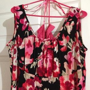 Black dress with pink floral pattern. Can be work with or with out the little bolero jacket. I have only worn this one time and forget it's in my closet!