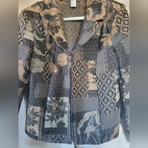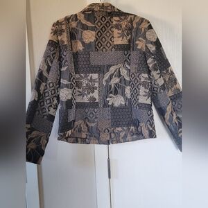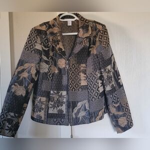 Dress Barn Floral Tapestry Patchwork Design Vintage Zip Up Long Sleeve Jacket