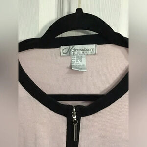 Introducing our stylish Dress Barn Full Zip Multi Color Long Sleeve Cardigan in size 14/16, now available in a preloved condition. This eye-catching sweater features a striking combination of black and pink stripes, adding a touch of vibrancy to your wardrobe. Hang it on your door and let its cozy allure invite you to embrace the colder seasons with warmth and fashion-forward flair.