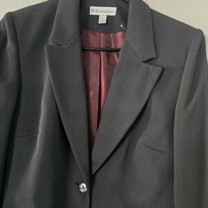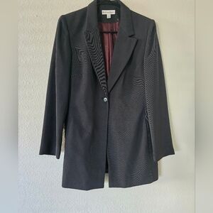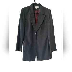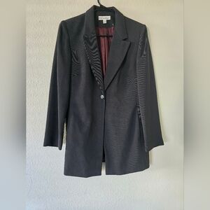 Dress Barn Long Blazer Women 6 Dark Green One Button Padded Career Exellent