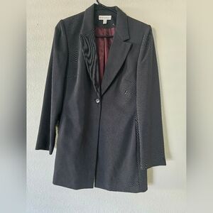 Elevate your wardrobe with this stunning black Dress Barn blazer, perfect for any occasion from formal to casual wear. The mid-length jacket features a check pattern, long sleeves, and a button closure with a buckle accent. The jacket is made from a polyester blend outer shell material with a rayon lining for comfort.