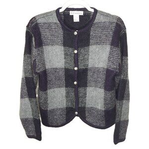 Dress Barn Mohair Blend Plaid Cardigan M Academia Preppy Twee Office Minimalist
