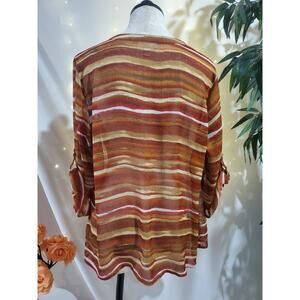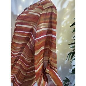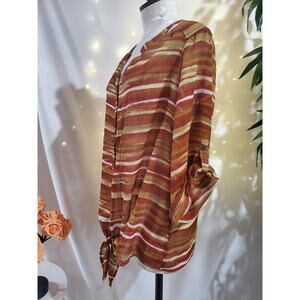 Dress Barn Sheer Stripe Button Up Tie Front Roll Tab Sleeve Blouse Top Size 1X