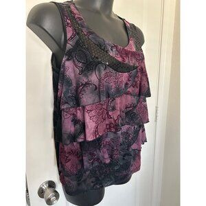 Dress Barn Sleeveless Ruffle Tiered Floral Print Top With Sequin Accent - 1X