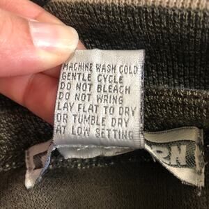Dress Barn Stripe Knit Sweater M Neutral Minimalist Top Green Tan Relaxed Fit