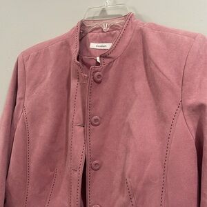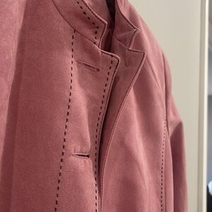 Dress Barn Sued Pastel Pink with black stitching Office Button Down Coat Blazer