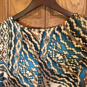 DressBarn Turquoise Beaded, Metal Sequins, Boho, Asymetric Hem Tunic. Women's size 18/20, 95% Poly and 5% Spandex Stretch Top. Pretty shades of Brown complement the Turquoise and Metal Bling. NICE! Does not look worn.