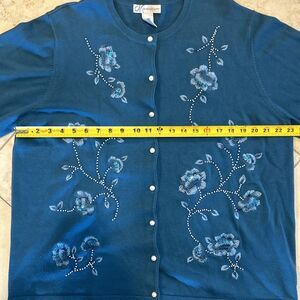 Dress Barn Vintage Embellished Studded Cardigan Sweater Blue Flowers Size 18/20