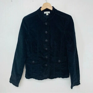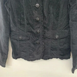 Dress Barn Womans Corduroy Jacket Small Black Ruffle Trim Bling Buttons