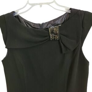 -This dress features a black sheath dress with cap sleeves, back zipper , lined, and a fitted waist.