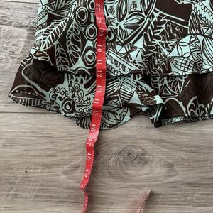 The VTG Dressbarn Floral Maxi Dress in blue and brown leaf pattern size 4 is a flowy and ruffled garment perfect for a party or casual occasion. This sleeveless dress with a round neckline features a pullover closure and is made of lightweight chiffon material. The dress is adorned with a floral pattern, layered accents, and is part of a vintage style, ideal for the summer, fall, or spring seasons. With a bohemian and classic theme, this dress embodies a fairy-like character that is sure to make a statement.