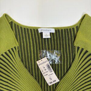 Dress Barn Womens Ribbed Knit Babydoll V Neck Fitted Y2K Sweater Sz Small Green