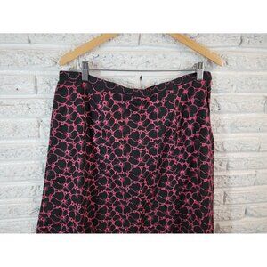 Dress Barn Womens Skirt 16 Mini ALine Black Pink Floral Eyelet Career FLO268E