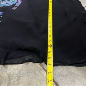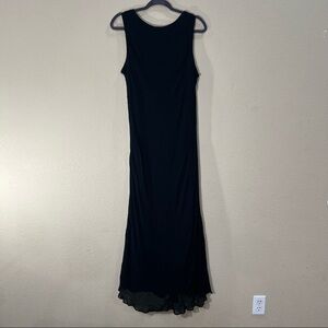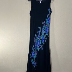 This Dress Barn Women's Y2K Babydoll Tiered Eyelet Maxi Dress in size 2XL is perfect for a fairy grunge style. The black dress features a sleeveless design with a crew neck and pullover closure. Made of lightweight rayon knit fabric, it has accents of sequins and a vintage look. The long A-line dress is ideal for casual occasions and can be styled for various seasons like summer, fall, and spring. Perfect for those who love nature, flower themes, and a mix of hippie, bohemian, and grunge aesthetics.