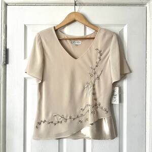 NWT Dress Barn Y2K Beige Floral Beaded Formal Skirt Set Sz 16