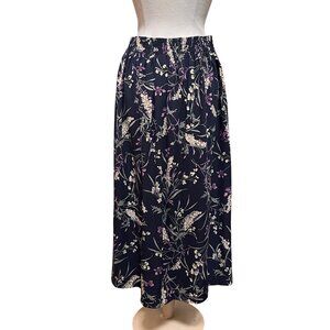 Dress Barn Y2K Floral Maxi Skirt 14/16 Navy Dark Fairy Cottage Office Career
