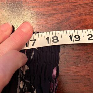 This Dress Barn maxi skirt features a charming floral pattern that adds sophistication to your wardrobe. Its elastic waistband ensures a comfortable fit, making it suitable for casual or semi-formal occasions. The navy background with purple and white flowers provides a versatile and elegant look.