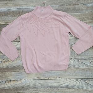 Dress Barn sweater pink soft mock turtleneck beaded Women's Size Large