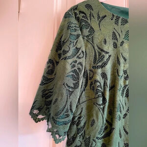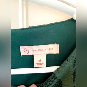 Dress Barn db established 1962 Dark Green Lace Elbow Sleeve Back Zip Blouse
