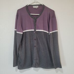 Beautiful top and matching sweater. Made with 55% acrylic and 45% cotton material. Will keep you warm and comfy. Tag says size 22/24. Is a button missing on sweater