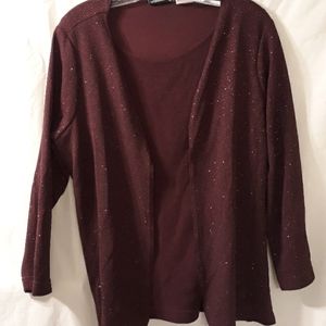 Dress Barn plus size 1X burgundy top with attached jacket. Jacket has Sparkles throughout. Gently worn.