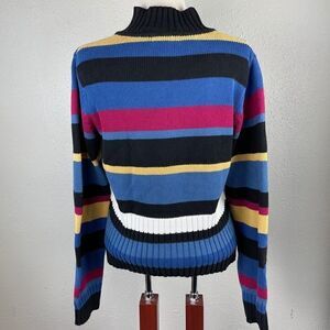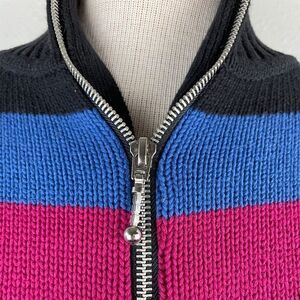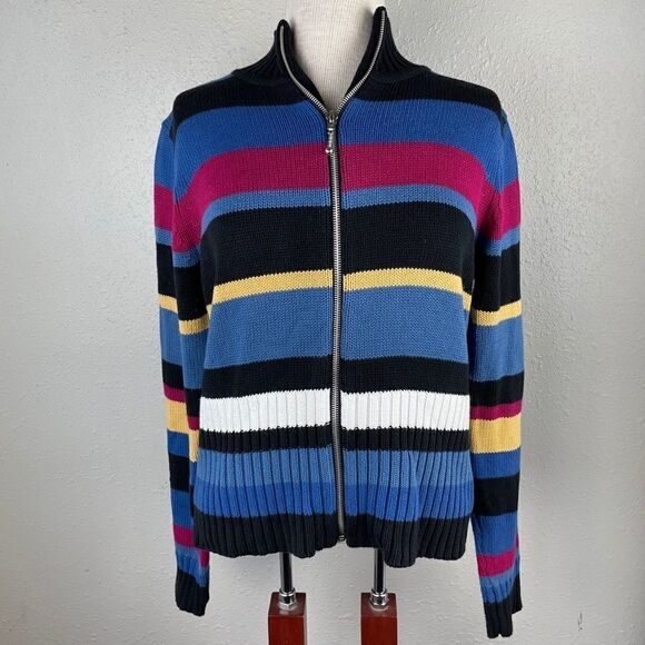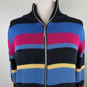 Super fun colors and style on the full zip sweater top by Dress Barn. It measures 20 inches armpit to armpit and is 21 inches in length. It is in excellent preowned condition.