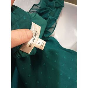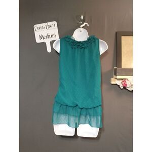 Dress barn, ruffled, chiffon tank top. Size medium. Has a cinching at the waist with a cute bow in front. Loose-fitting and pretty. Comes from a clean environment and is in excellent condition.