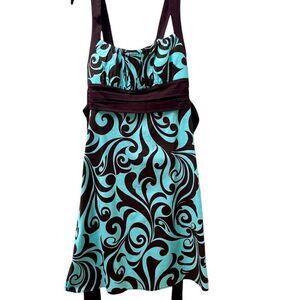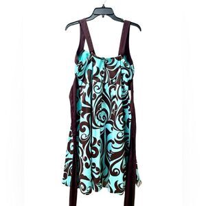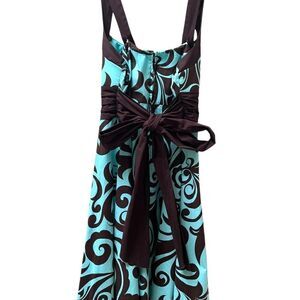 Beautiful teal, brown sundress with tie waist and adjustable straps. Pit to pit: 16”, Length: 37.5”. Zip back, 97% cotton, 3% spandex. Built in bra! Size 10”, never worn!