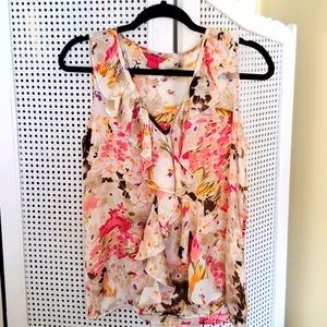 This top has a cinched waist and flowy details. Looks awesome with jeans and sandals for a night out. Runs bigger than a medium closer to a Large. Great condition no flaws found.