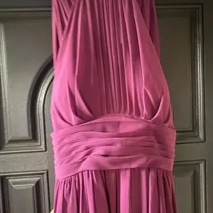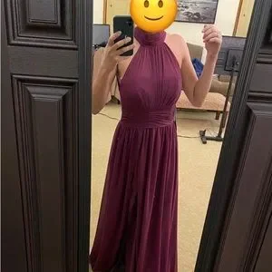 I wore this dress once as a bridesmaid for a wedding this year and won’t wear again. From Azazie, link below. Color Raspberry, size A6, (fits more like a 4) size chart in link. Cleaned. Retail $129