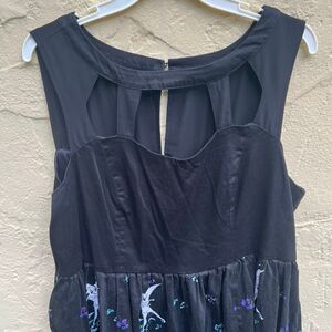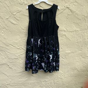 You’ll be the embodiment of faith, trust and pixie dust in this black dress from Disney. Featuring a cut-out neckline and floral Tinker Bell print skirt, this dress is absolutely magical. Pockets! Sheer upper back.